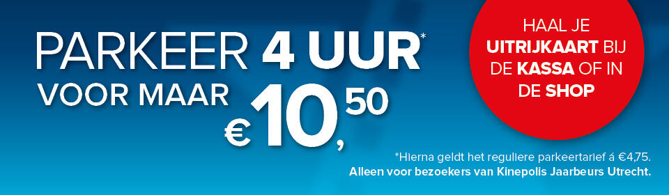 Alle automobilisten die een kaartje voor de film hebben kunnen 4 uur parkeren voor slechts € 10,50. Hierna geldt het reguliere parkeertarief van € 4,75 per uur op P2 en P4 Jaarbeurs (ingang Truus van Lierlaan). Klik hier voor meer informatie.